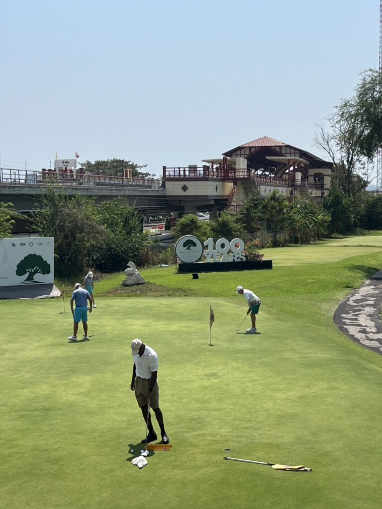 今回の訪問では、大会サポートと並行して、パタヤ・バンコク・ホアヒンのゴルフ場を視察。タイのコースは比較的フラットなレイアウトが多い一方で、池やバンカーの配置が戦略的に設計されており、見た目以上にマネジメント力が求められる点が印象的でした。